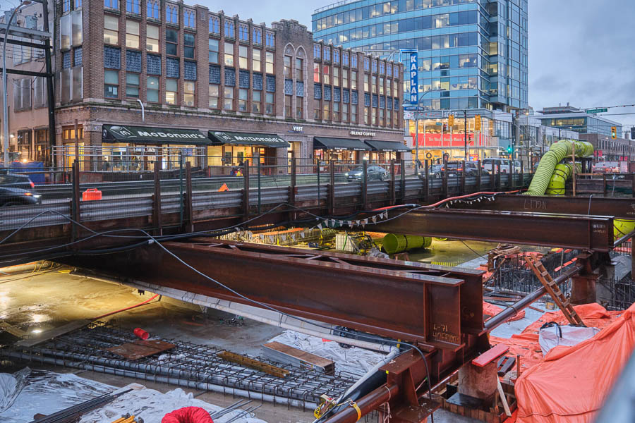 December 8th, 2025 — Construction on the Millennium Line continues at Broadway and Granville Street.