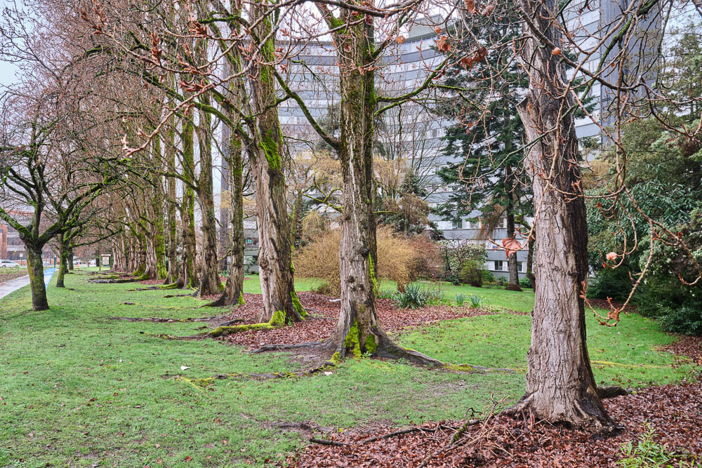 March 31st, 2026 — Trees at the corner of Burrard Street and Cornwell were cut down to make way for a bus stop at the Senakw housing development. Below, as they were on March 6th.